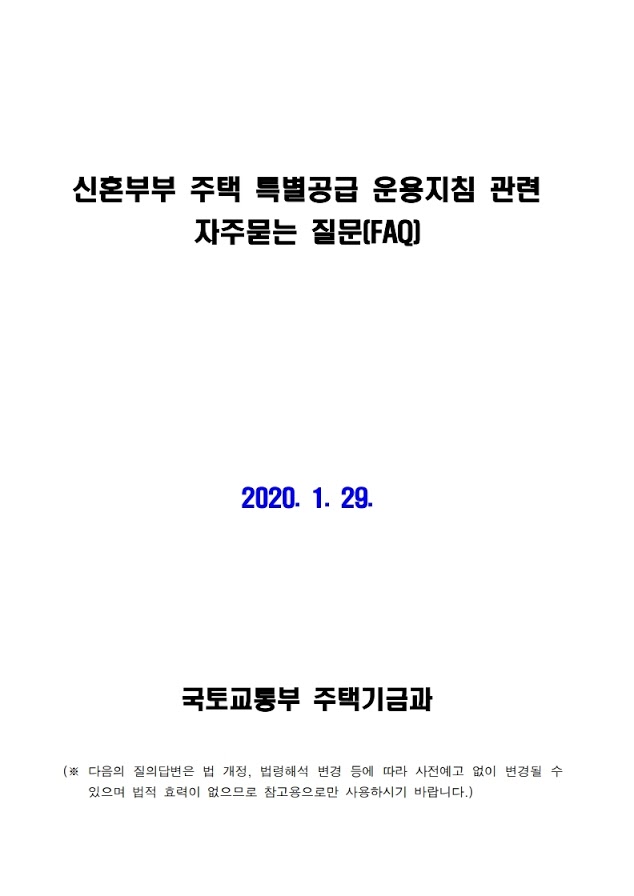 신혼부부 특별공급 자주묻는 질문 - 국토교통부 주택기금과