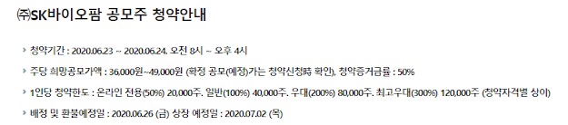 한국투자증권 기준 SK바이오팜 청약 안내입니다.