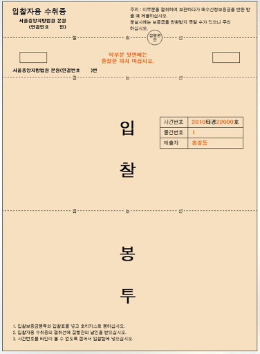어제 집에서 입찰표는 작성했지만, 입찰봉투, 매수신청보증봉투 등은 법원 현장에서 받습니다.
