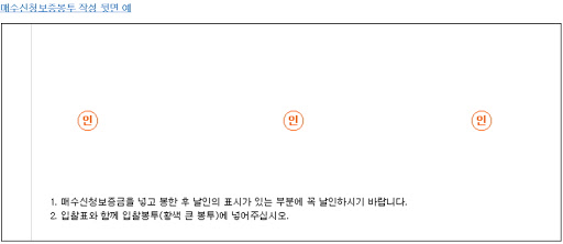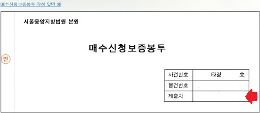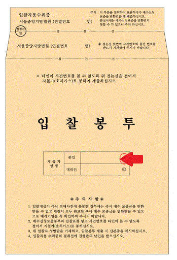 1. 매수신청보증봉투 안에 보증금을 넣고 봉합니다.