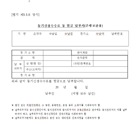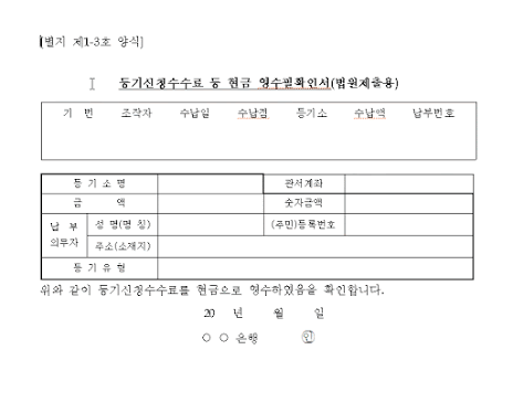 등기신청수수료 영수증(법원제출용, 고객보관용 총 2장)