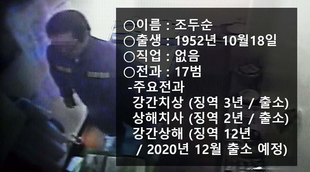 조두순은 1952년 10월 18일 생으로 태어날때부터 가정환경이 좋지 않았다고 합니다. 초등학교 6학년 시절 중퇴하여 어릴때부터 지속적으로 온갖 범행을 저질렀습니다. 학력미달로 병역의무가 면제되었기에 사실상 감옥에 있어서 범죄를 저지르지 못했을 때 빼고는 항상 사회에 위협이 되어왔습니다. 최초의 범행으로 그는 1970년에 자전거를 훔치다가 소년 신분이기에 보호자 감호처분을 받았고, 1972년에는 같은 나이의 친구들을 협박하고 돈을 편취해서 1년 6개월, 절도로 8개월 수용되기도 하였습니다. 그의 성폭련 전과는 1983년 시작되는데, 서울시 도봉구에서 길에서 만난 여성을 때리고 끌고가 성폭행하여 감옥에서 3년을 살게됩니다. 지금 생각하면 이것도 형량이 참 많이 낮네요. 또 1995년 12월에는 안산에 노숙자들이 모여서 사는 희망자립원이라는 곳에서 생활하고 있으면서, 술을 마시던 중 '전두환 만세'를 외친 60대를 그자리에서 폭행하여 숨지게 하는 등 총 전과 17범의 전과자가 되게 됩니다.