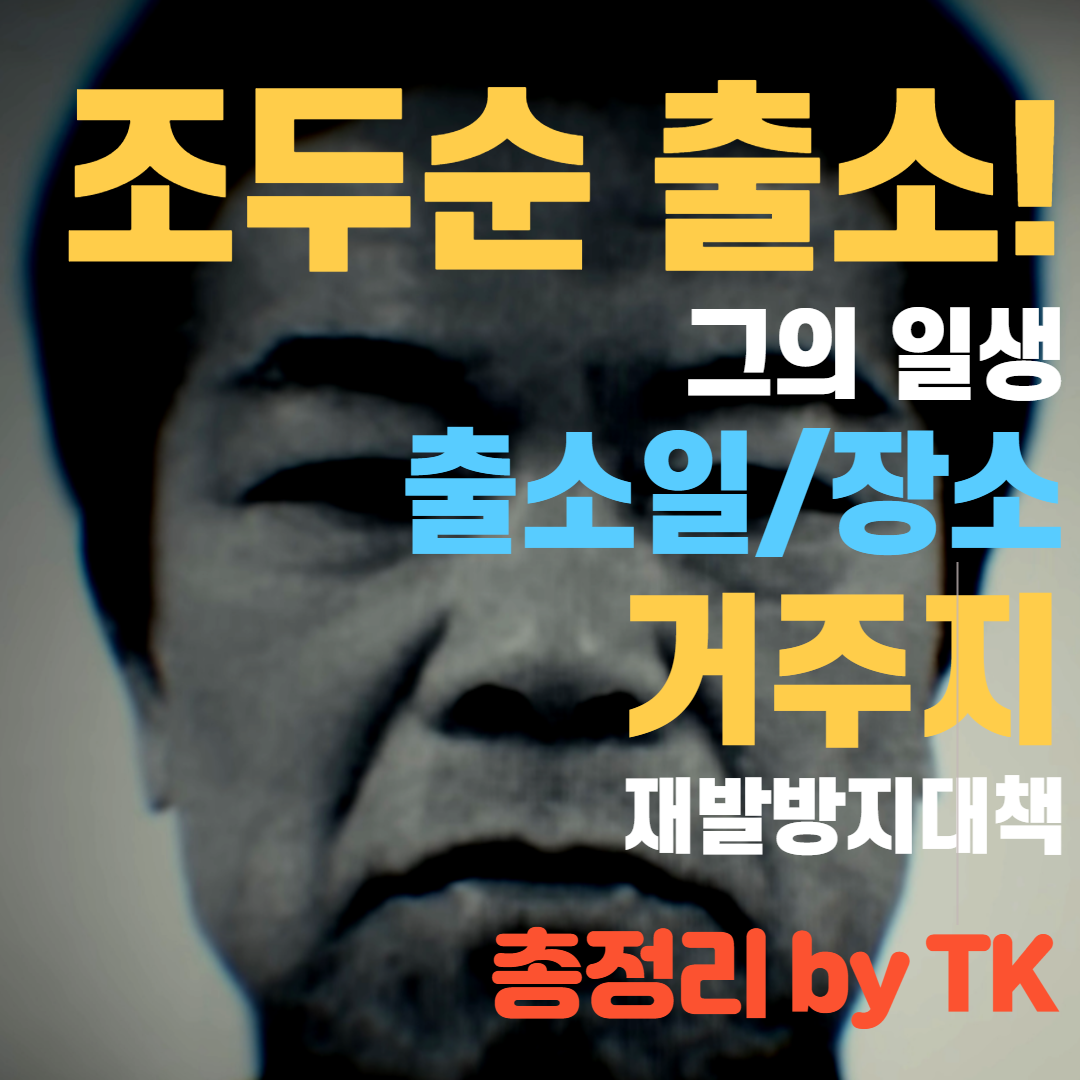 조두순이 출소합니다. 이런 포스팅 하고싶지 않지만 출소 몇달전부터 이슈가 되고있고 여러분들이 궁금해 하시는 부분들이 많은 것 같아서 정리해봅니다. 정말 온 국민을 공포와 혐오에 떨게 했던 그인데요 2019년도 10월말 복역중인 그의 신상(얼굴을 포함)이 공개되면서 더 직접적으로 다가왔던 것 같습니다. 이슈가 너무 커서 그리고 충격적이어서 가깝게는 피해자와 조두순 출소 후 거주하게될 곳의 주민들까지 아주 민감한 부분이 많은 것도 사실입니다. 그래서 최대한 조두순과 관련된 팩트 위주로 포스팅하도록 하겠습니다. 조두순에 대해서 그리고 그가 저질렀던 범죄에 대해서, 어느 교도소에서 나오고 언제 출소하는지, 출소 후 거주지는 어디인지, 이에 대한 재발대책은 있는지 등 총정리 해봅니다.