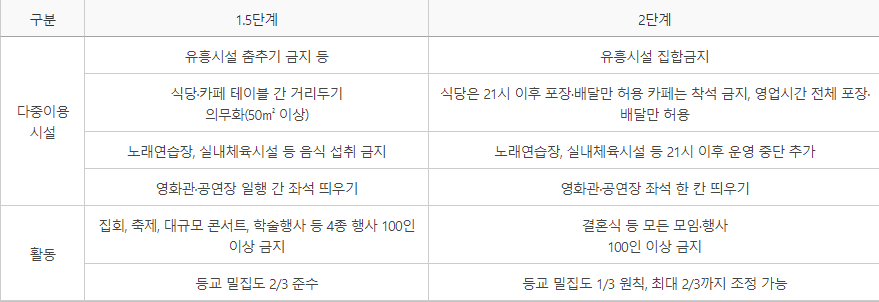 거리두기 1.5단계 - 2단계 - 2.5단계 기준