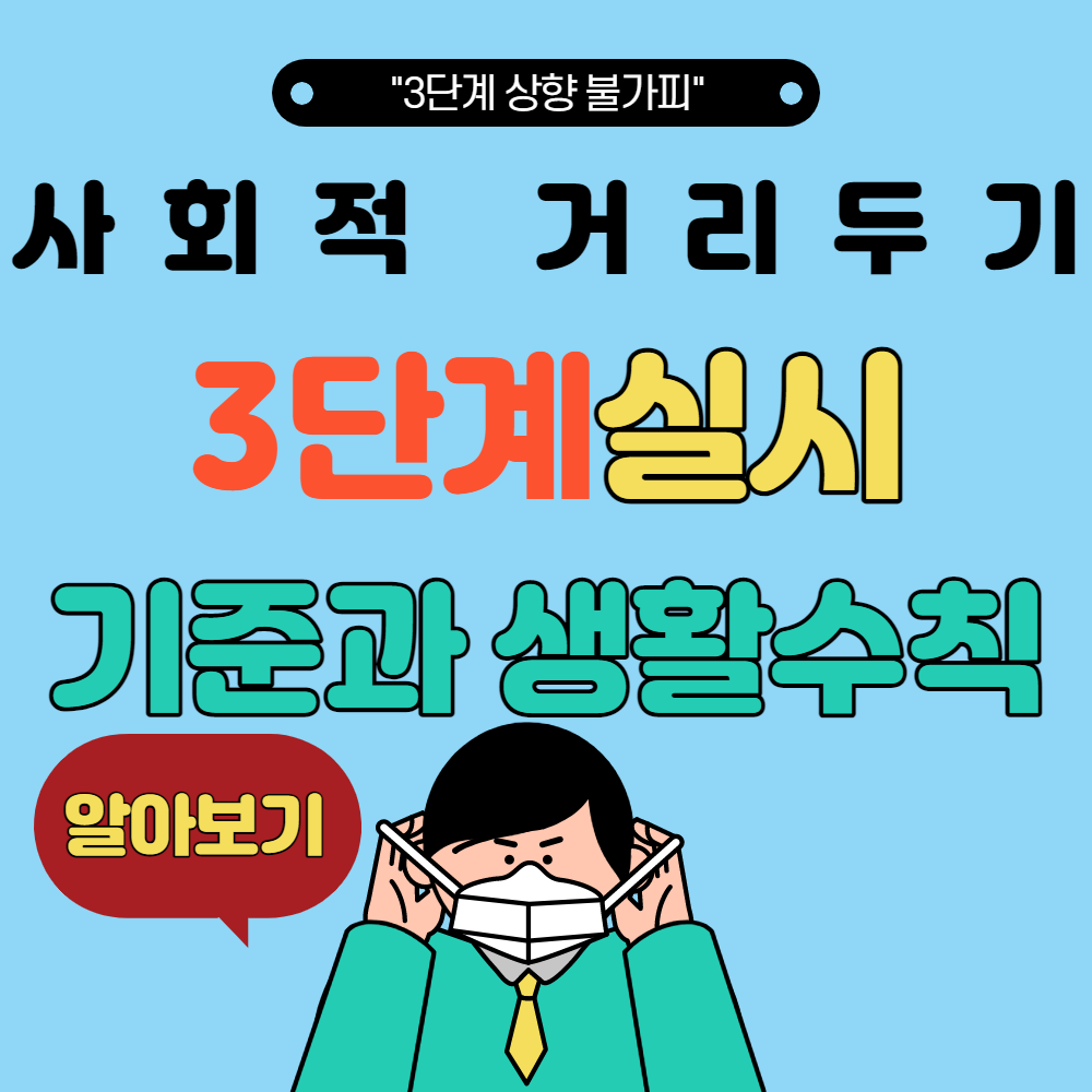 3단계 거리두기는 하루에 800~1,000명의 환자가 발생했을때의 상황을 반영하여 설계되었고, 사실상 거리두기의 마지막 마지노선이기 때문에 정부가 나서서 선제적으로 하기는 힘들지만 위의 기준을 도달했을 때에는 3단계 격상밖에 남은 방법이 없습니다. 코로나 3단계에서는 필수시설을 제외하고 모든 시설운영이 전면적으로 제한됩니다. 국공립시설, 어린이집(긴급돌봄제외) 휴원이 원칙이며, 10명이상 집합금지, 스포츠 금지, 학교 등교 금지, 종교활동 금지, 모든 모임 금지 등 사실상 할 수 있는 모든 사회 활동이 제한되게 됩니다.