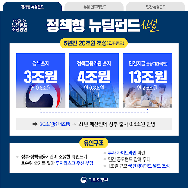 그래서 오늘은 제1차 한국형 뉴딜펀드(이하 '뉴딜펀드')에 대해서 궁금할 수 있는 것들을 정리해 보았습니다.