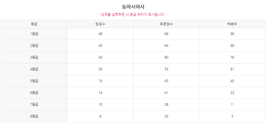 사탐 - 동아시아사 수능성적표 최종 등급컷 보기