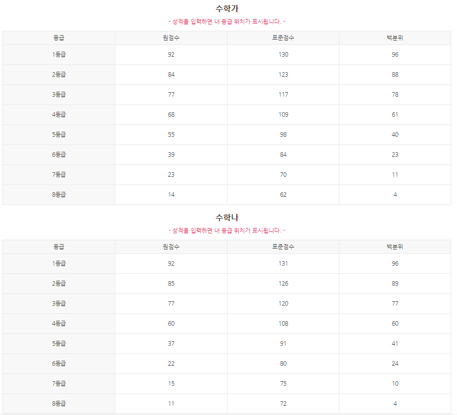 본인의 원점수, 최종 등급컷 등을 확인하고 추후 일정을 작성해보세요!