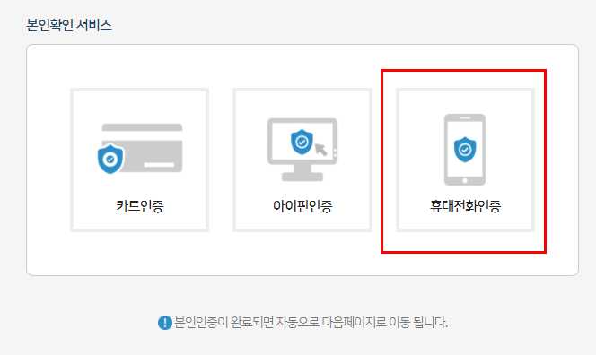 3. 본인인증을 진행하세요. 저는 휴대폰 인증으로 해봤습니다.