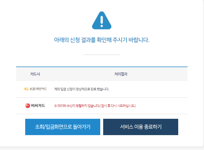 11. 신청결과가 나왔네요. 다만 모든 카드사가 원활하게 데이터 조회가 되지는 않는 것 같아요. 참고하세요