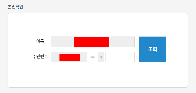 5. 이름과 생년월일을 입력하여 본인을 확인해봤습니다.