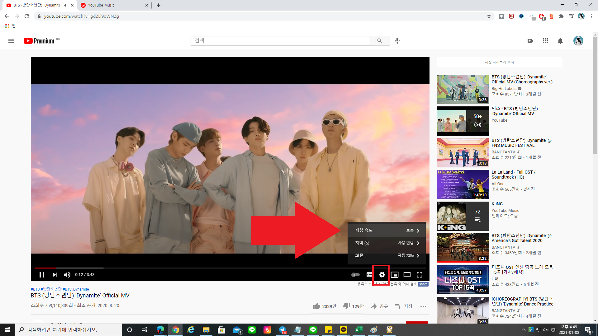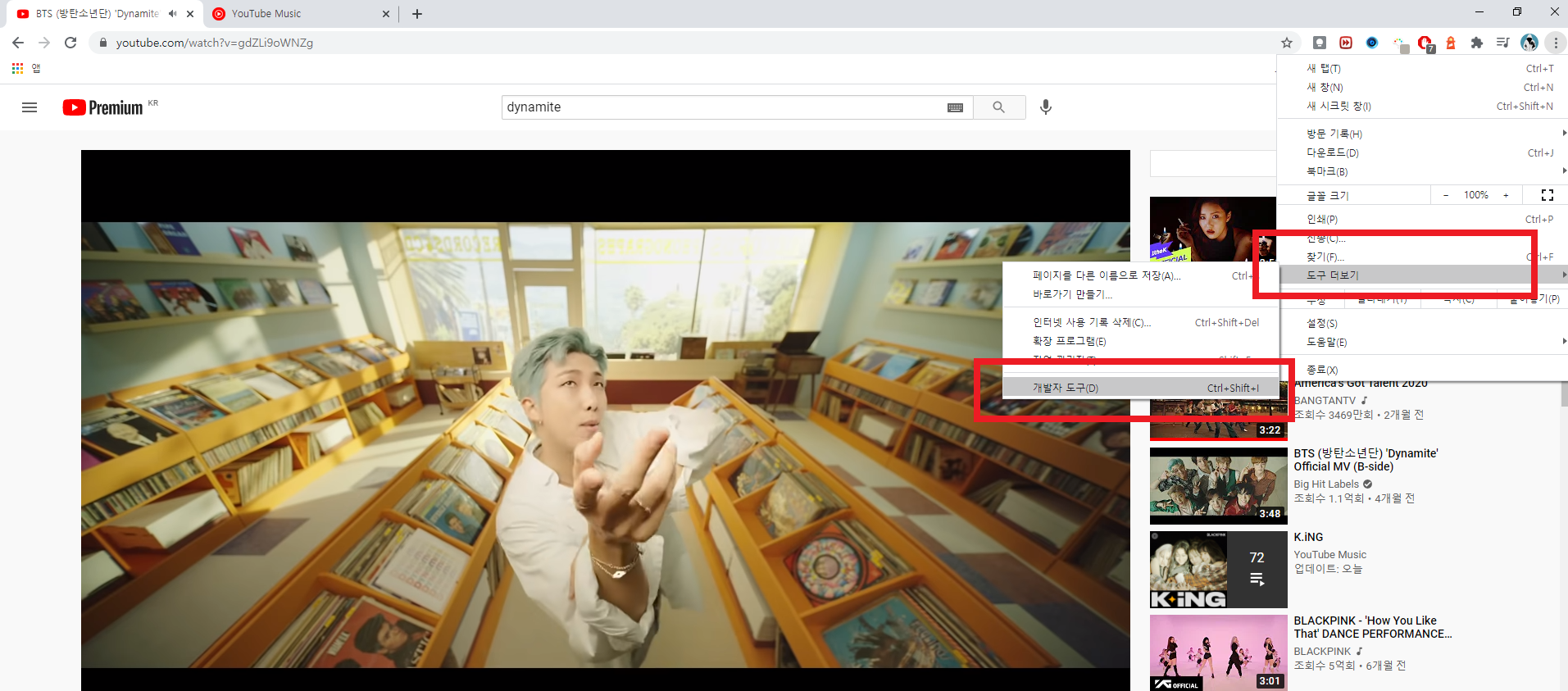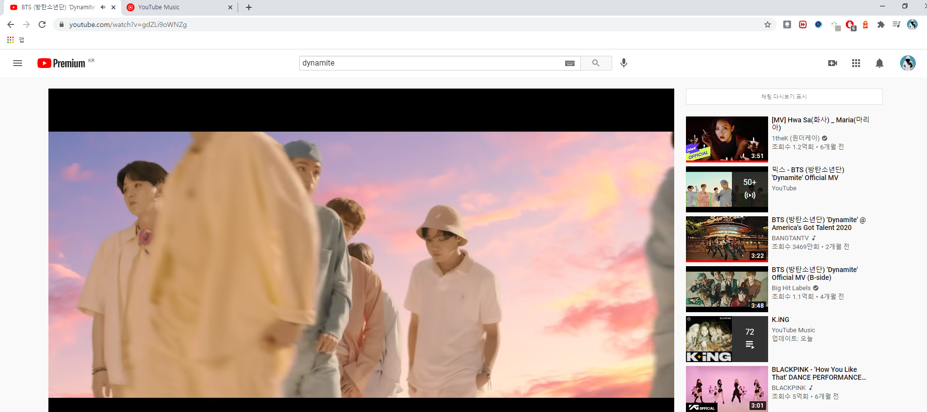 step 2. 보고싶은 영상을 검색하세요. 저는 BTS의 Dynamite를 선택했습니다.
