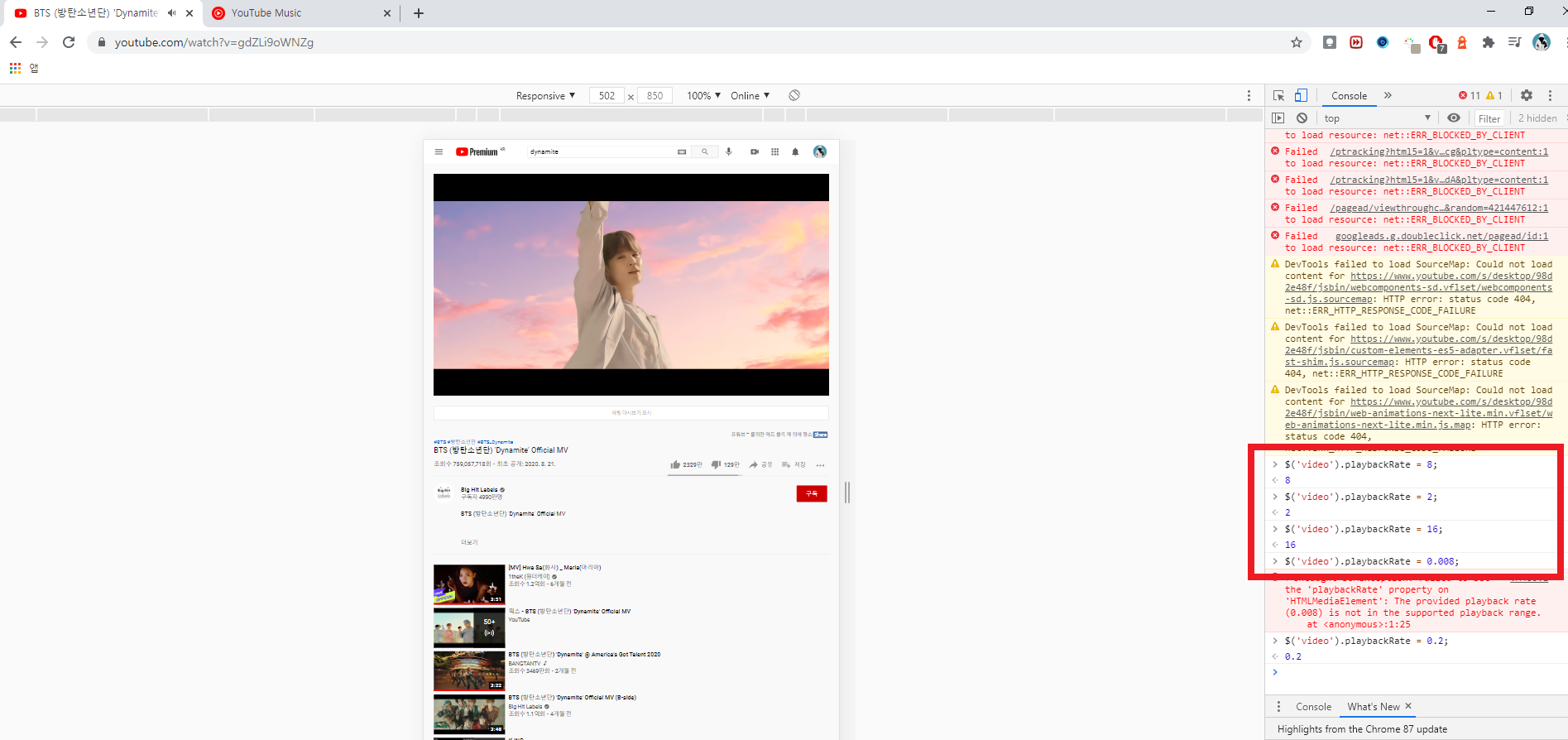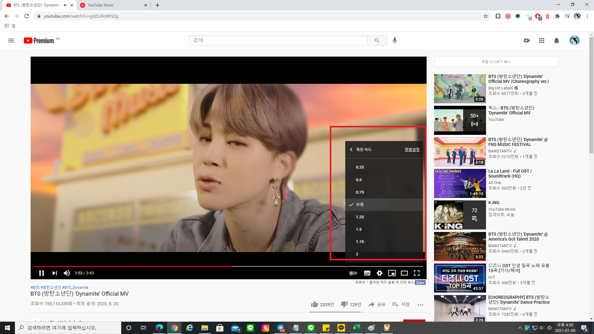 step 7. 왼쪽에서 속도조절이 된 유튜브 동영상을 확인합니다.