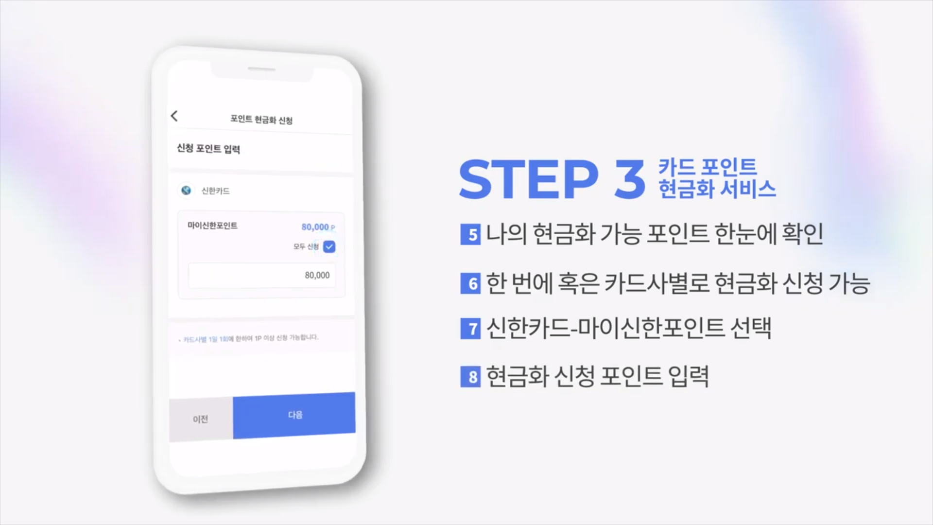 step 8. 아래로 스크롤을 내려서 카드 포인트 현금화 메뉴를 선택합니다.