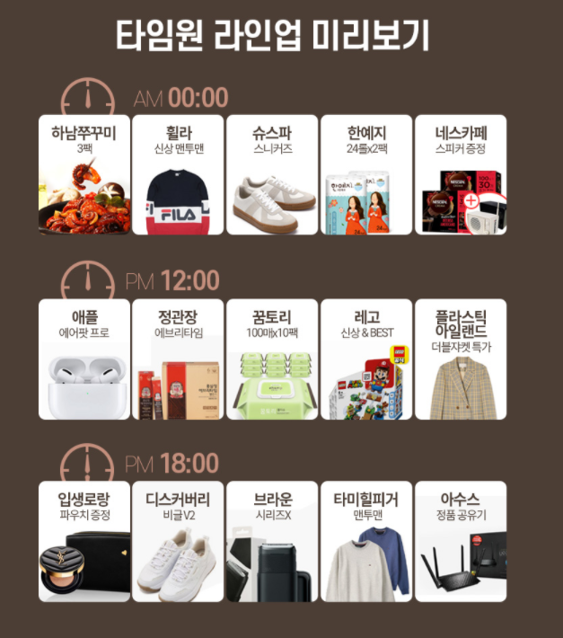 시간별로 할인품목을 정해서 세일하기도 합니다.